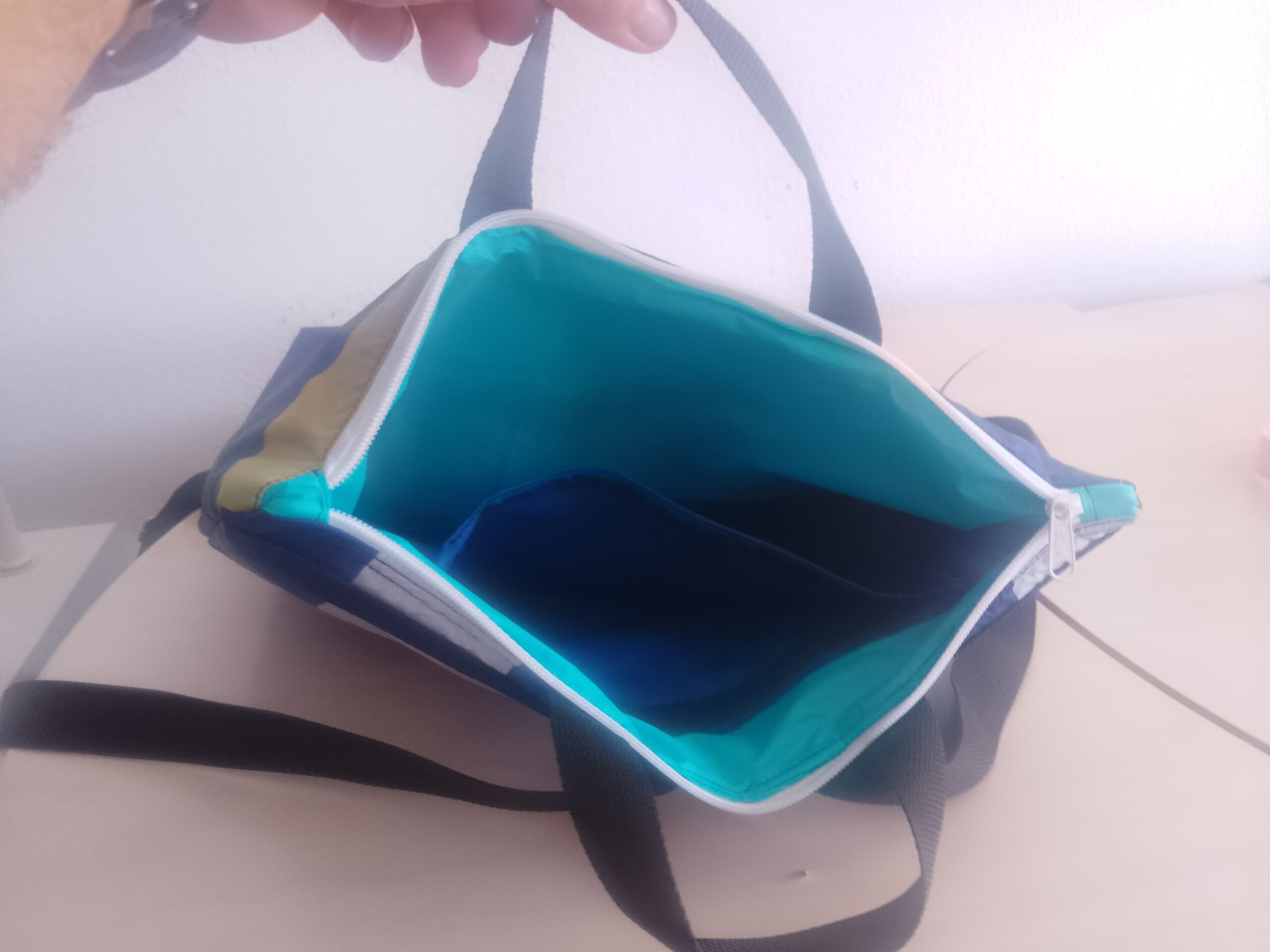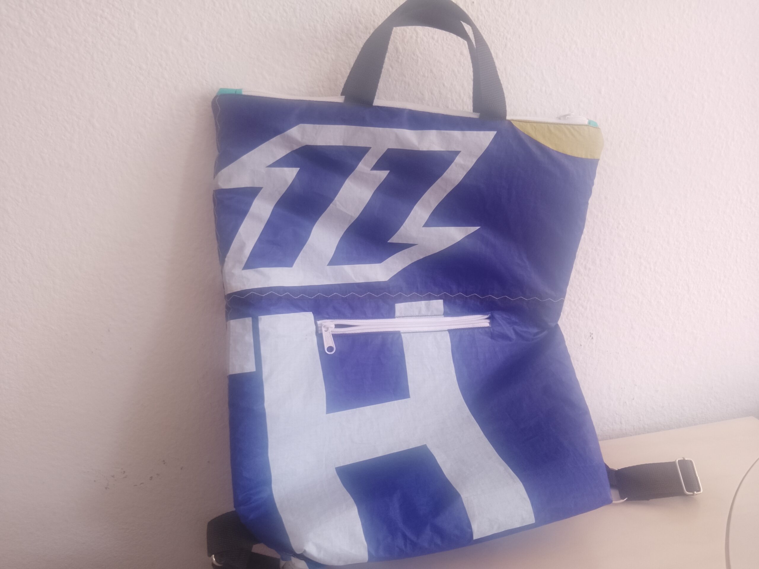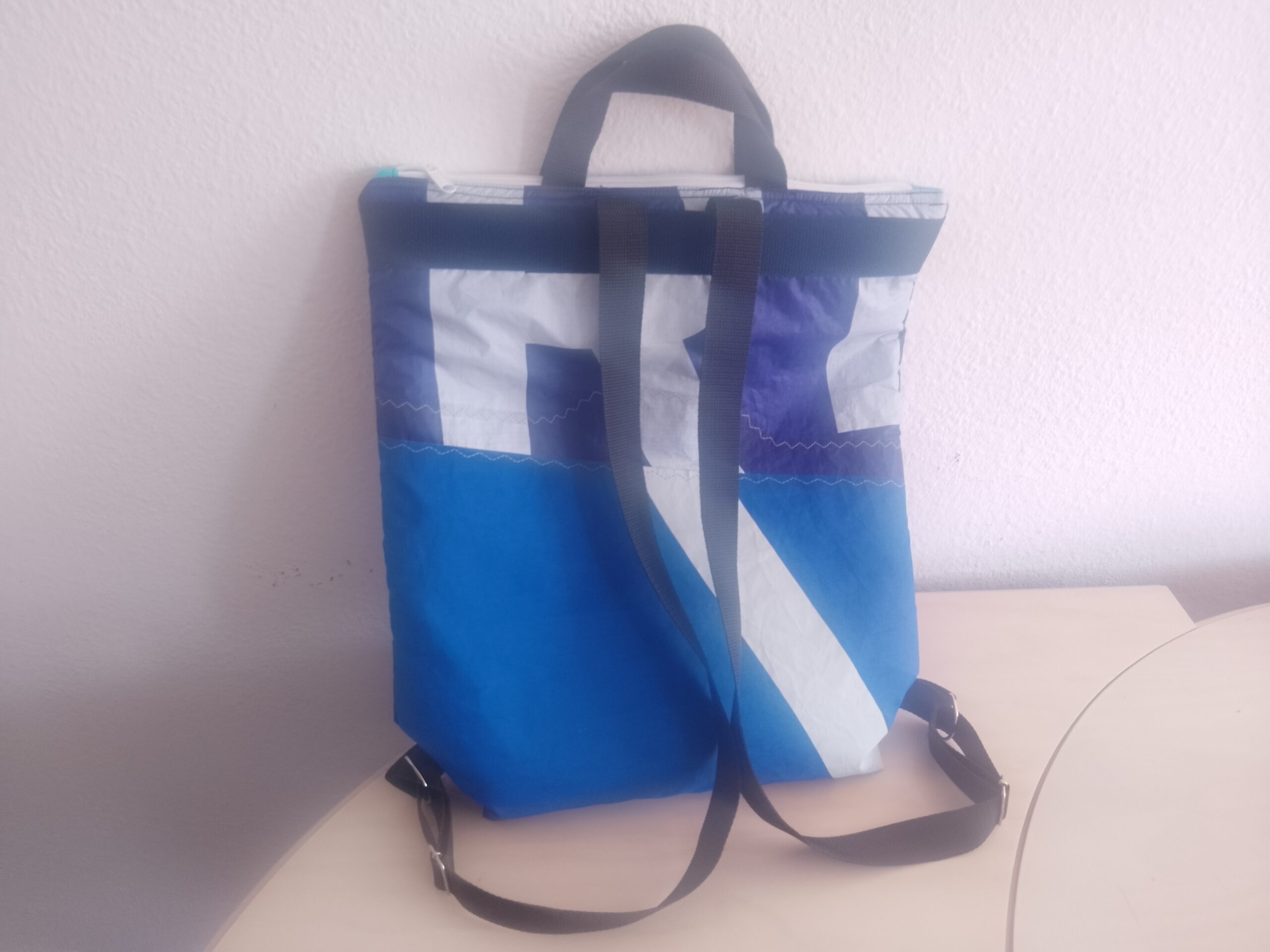 Mochila de mayor capacidad con bolsillo exterior con cremallera e interior con tejido reciclado de kite… Diseño Ăşnico correas ajustables todo artesano y sosteniblr